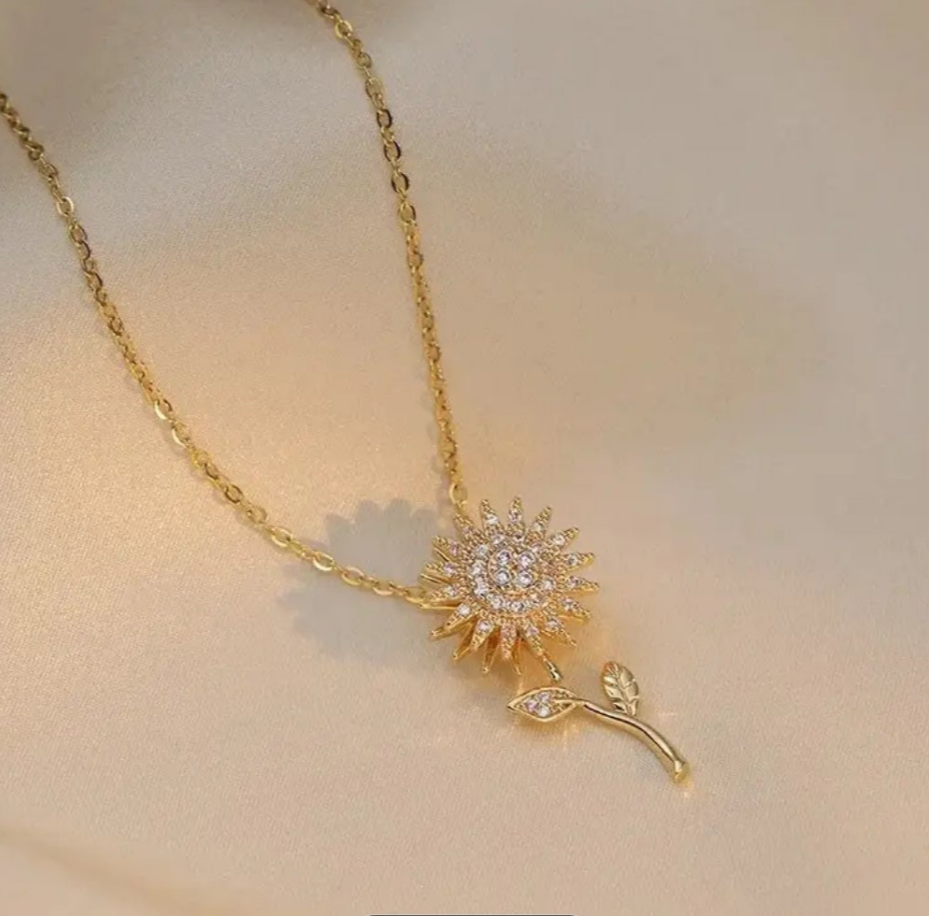 Lumineux et raffiné, ce collier tournesol au pendentif tournant orné d’une zircone brillante symbolise la joie et l’amour. Résistant à l’eau et hypoallergénique, il est idéal à offrir à une maman, une fille ou une femme chère à votre cœur